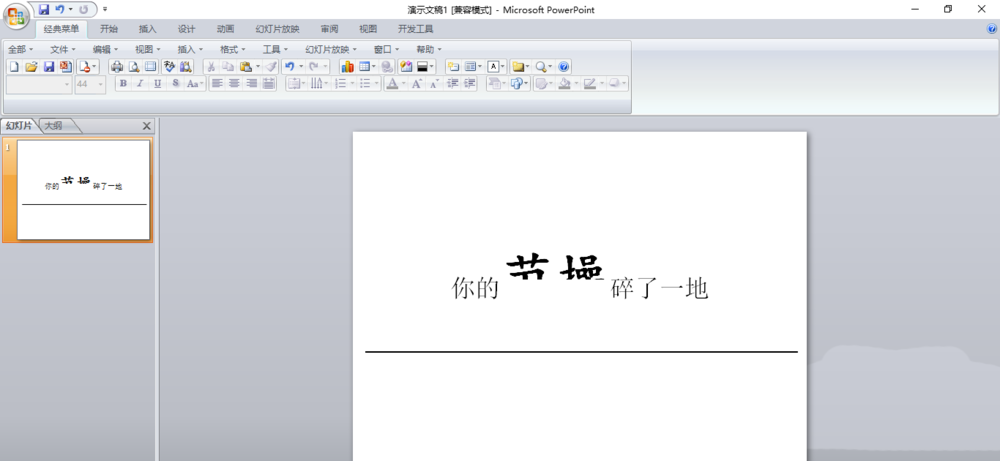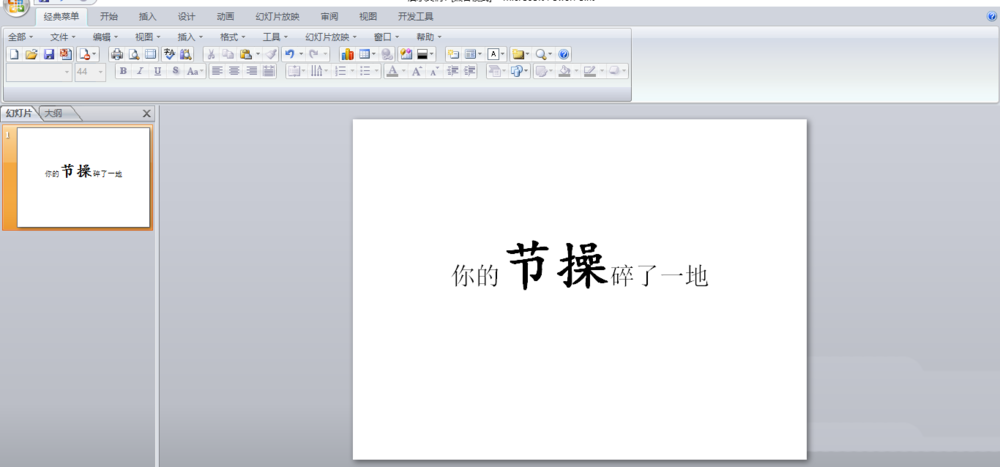 1、首先,我们要新建一张PPT。输入一段你想要表达的话。
