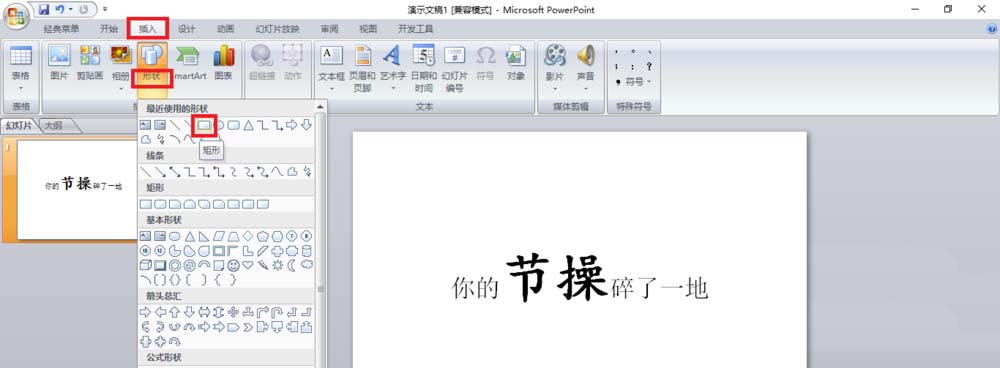 2、现在,再插入一个填充色为背景色的矩形。大小在刚好遮挡住“重要”部分的下半即可。