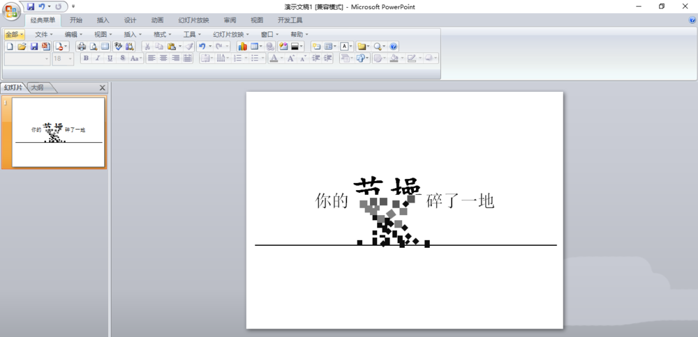 ppt中想要制作一个破碎的文字效果,该怎么制作这种文字碎一地的效果呢?下面我们就来看看详细的教程。