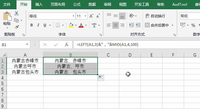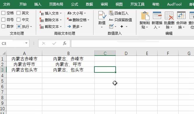 Excel表格中输入的数据,如下图所示将省份和城市用逗号隔开,该怎么实现呢?下面我们就来看看实现的两种方法,请看下文详细介绍。