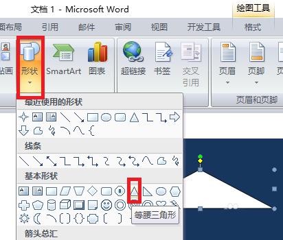 6、改变等腰三角形形状(鼠标左键点击小黄点并拖动就可以改变形状),并放到相应位置。