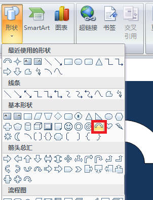 9、改变空心弧大小(鼠标左键点击小黄点并拖动就可以改变大小),并放到相应位置。