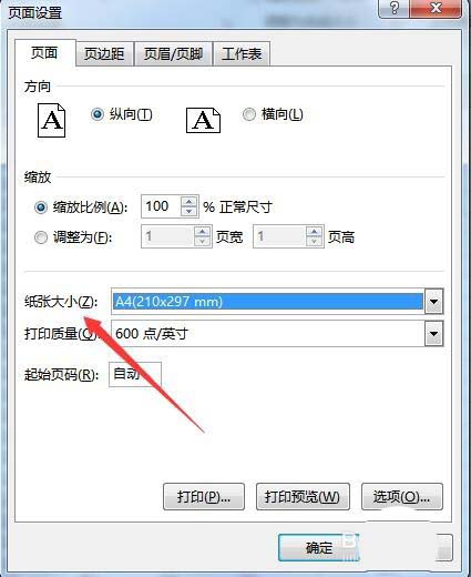 3、在打开的页面设置窗口中,我们点击纸张大小太下拉按钮