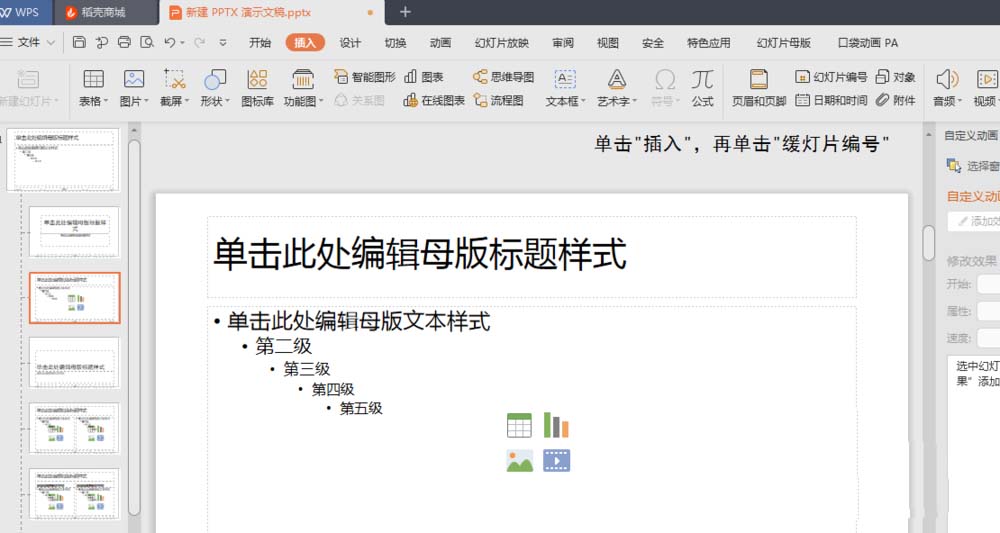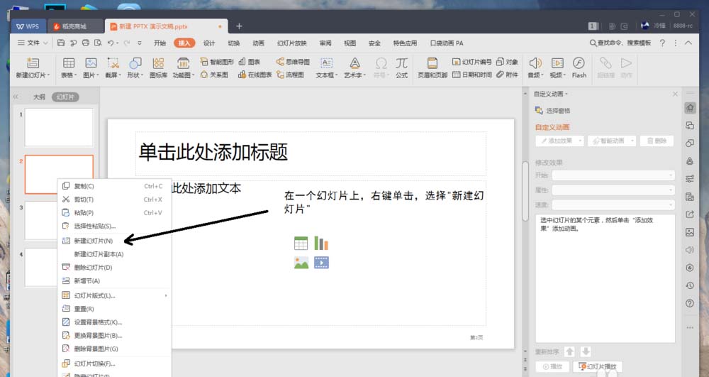 7、选中一个幻灯片,右键单击选择“新建幻灯片” ,新添加的幻灯片自动生成当前页码