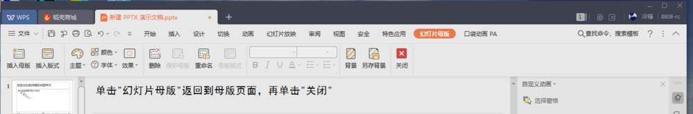 6、单击“幻灯片母版”返回到母版页面,再单击“关闭”