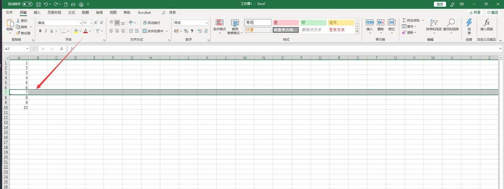3、插入新行后的效果如图所示