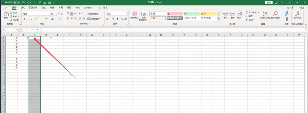 1、打开Excel 2019文档,我们以以下十行为例进行讲解