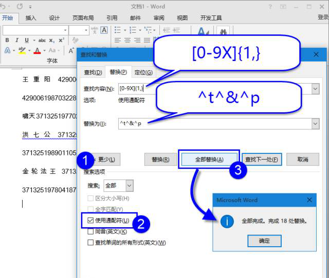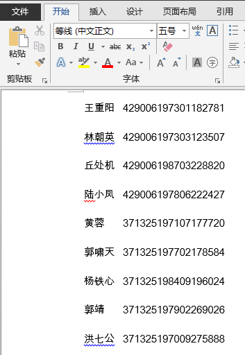 合在一起就是将查找的所有身份证号码前面加上制表符和姓名分开,后面加上换行符,使每组姓名和身份证单独一行。