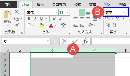 在Excel中,先选中用于存放数据的两列列标,设置单元格格式为文本。