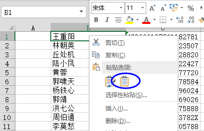 再回到Excel,右键单击B1单元格,在粘贴选项中选择【匹配目标格式】。