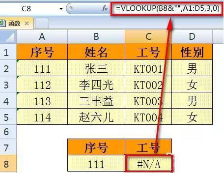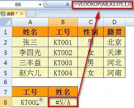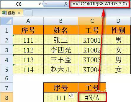 三、如果查找的值不在数据表的第一列,也会出现错误值。