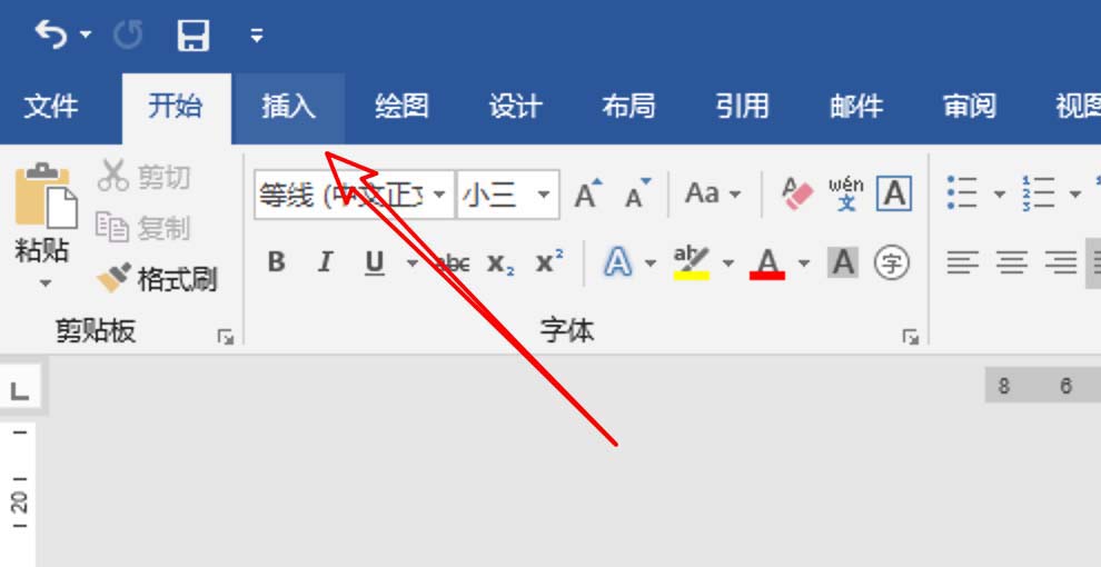 1、打开word文档,点击上方菜单栏的「插入」项。