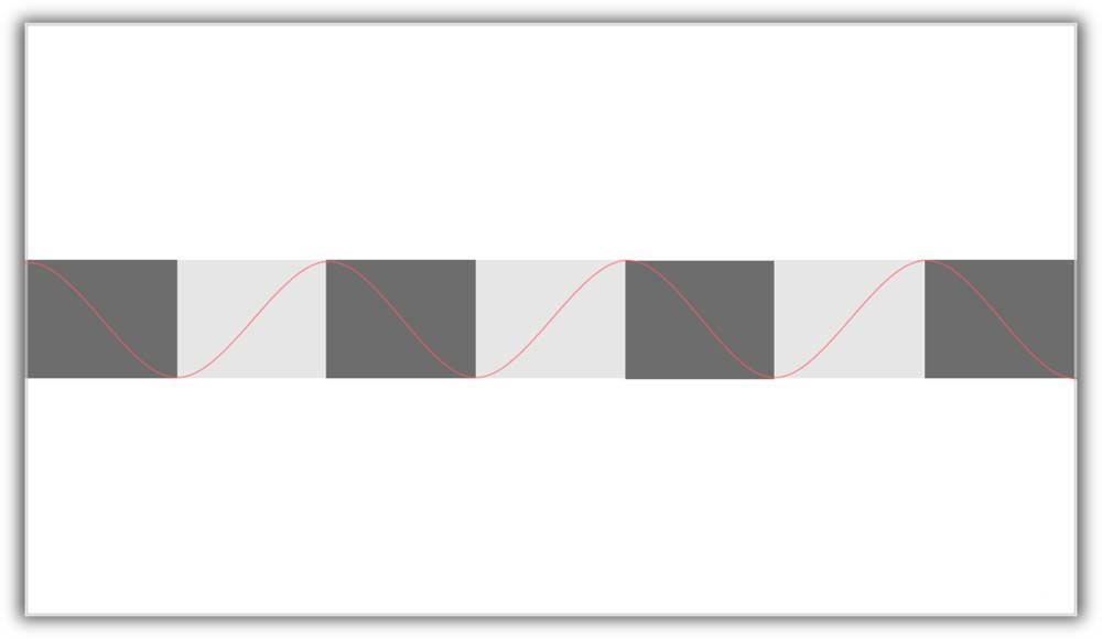 2、接着,绘制平滑的线条,这是比较难的部分。在页面中插入多个相同大小的矩形,并排成一行,作为辅助图形。