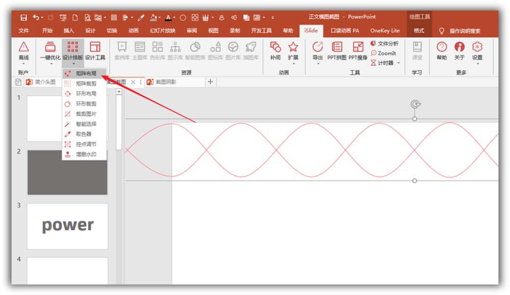 7、把两根曲线组合起来,点击iSlide菜单下的矩阵布局。