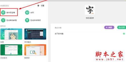 2、回到快速启动页的界面,用户可以在左边一栏的功能中看到“插件百宝箱”选项,进行点击即可,如下图所 示: