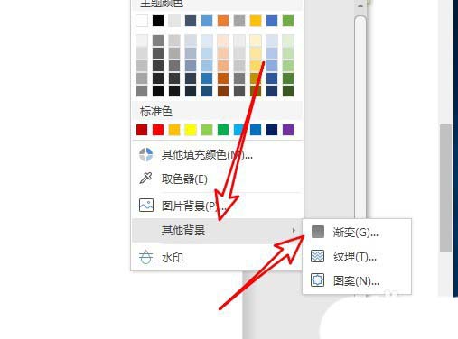 3、在弹出的下拉菜单中选择其他背景/渐变菜单项