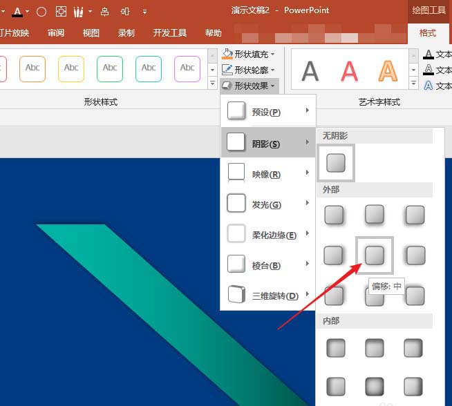 4、再给平行四边形添加上居中阴影。