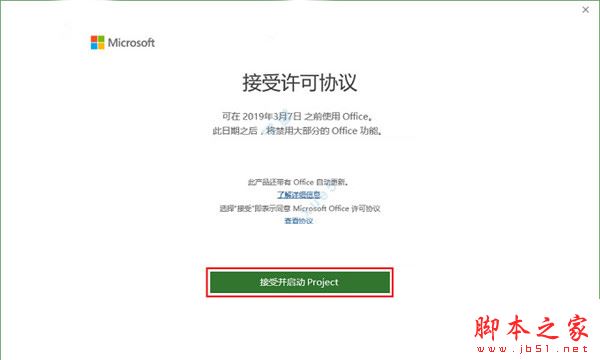 10、进入许可协议界面后,点击“接受并启动Project”。