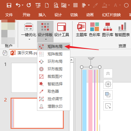 4、选中组合线条,然后点击iSlide菜单下的矩阵布局。
