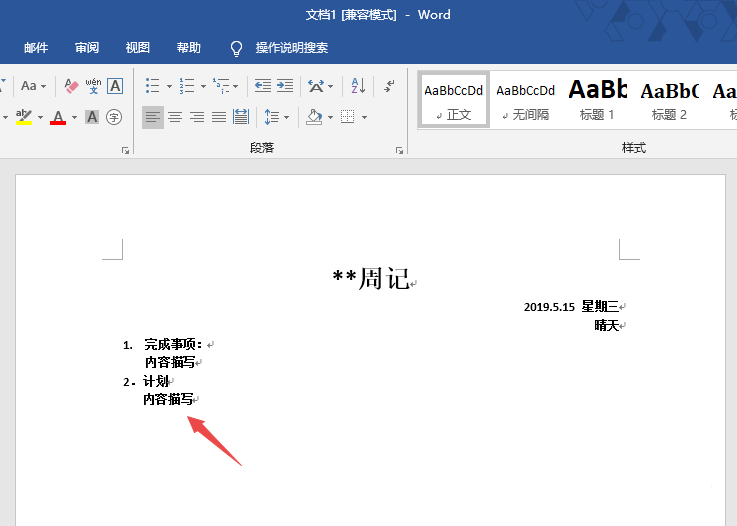 然后我们该写下面的内容了,往往写的是计划,也就是下周打算做什么,需要写明一些具体的内容。