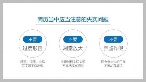 但是,如果只是为了让简历看起来好看,无视实际情况,任性地描述成:深度组织策划市场部核心活动,精通部门主要业务流程,实现总业绩提升30%,扩大市场份额13%。这样明显的简历作假, HR只会默默地把此人拉黑。