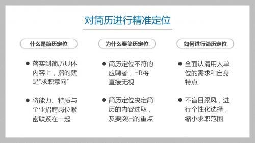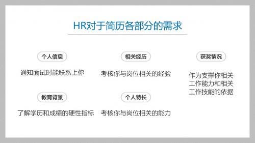 而对于简历而言,需要实现的目标是:针对性地满足HR对于简历各部分的需求。