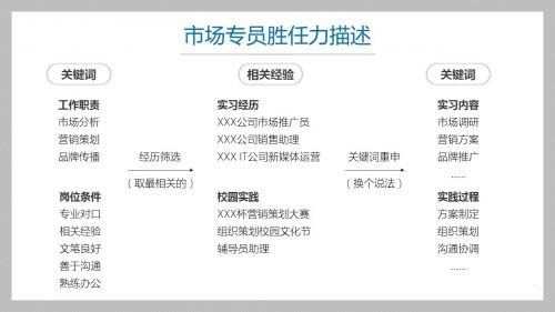 根据上述招聘说明,可得到若干关键词,并由此提炼相关经历。由上述胜任力描述流程得: