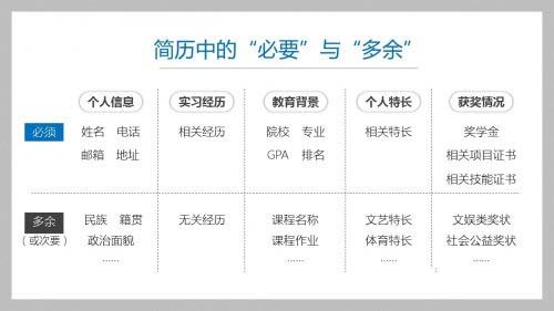 通过分析HR对于简历的需求,可以帮助我们更好地理解: 简历中什么是必要的,什么是多余的。