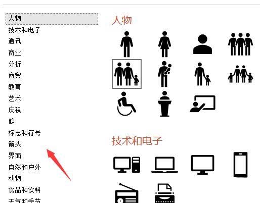 2、接着在打开的页面中能看到有非常多的图标,而且都一一进行分类了,直接在这里选择自己对应的一款合适的图标即可,这样就能直接在这里选择一个好的图标了,能让自己的PPT做得更好一些。