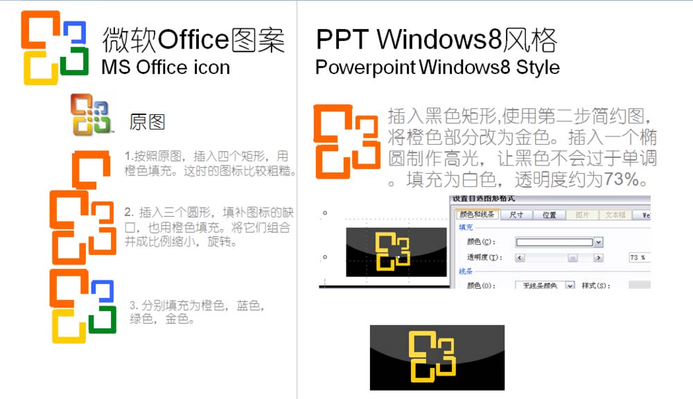 W8和苹果手机越来越多的采用简洁的扁平化图标,越来越多的人喜欢,那用PPT怎样画这样的扁平化图标的呢?