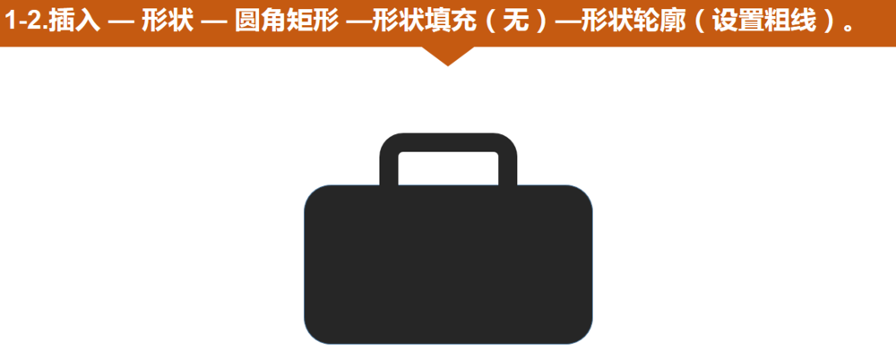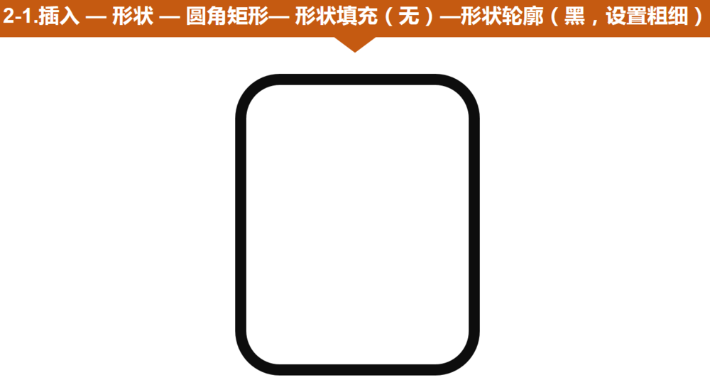 1)使用插入里面的形状工具,使用圆角矩形绘制图形,图形填充改成无填充,轮廓线改成黑色,调整粗线至合适大小。