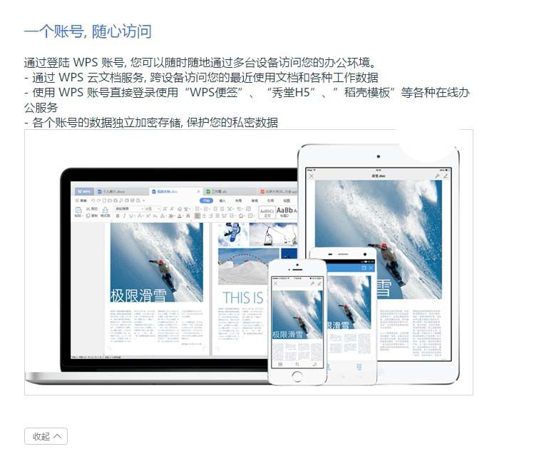 - 使用 WPS 账号直接登录使用“WPS便签”、“秀堂H5”、”稻壳模板”等各种在线办公服务