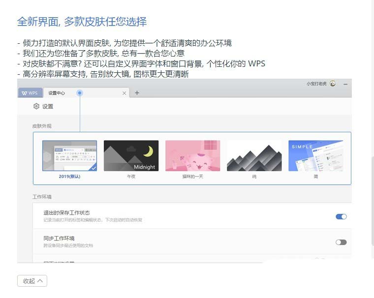 - 对皮肤都不满意? 还可以自定义界面字体和窗口背景,个性化你的 WPS