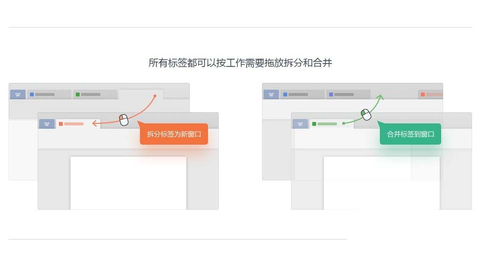 - 文档太多? 只需将不同任务的标签拖出,即可创建新窗口放置它门