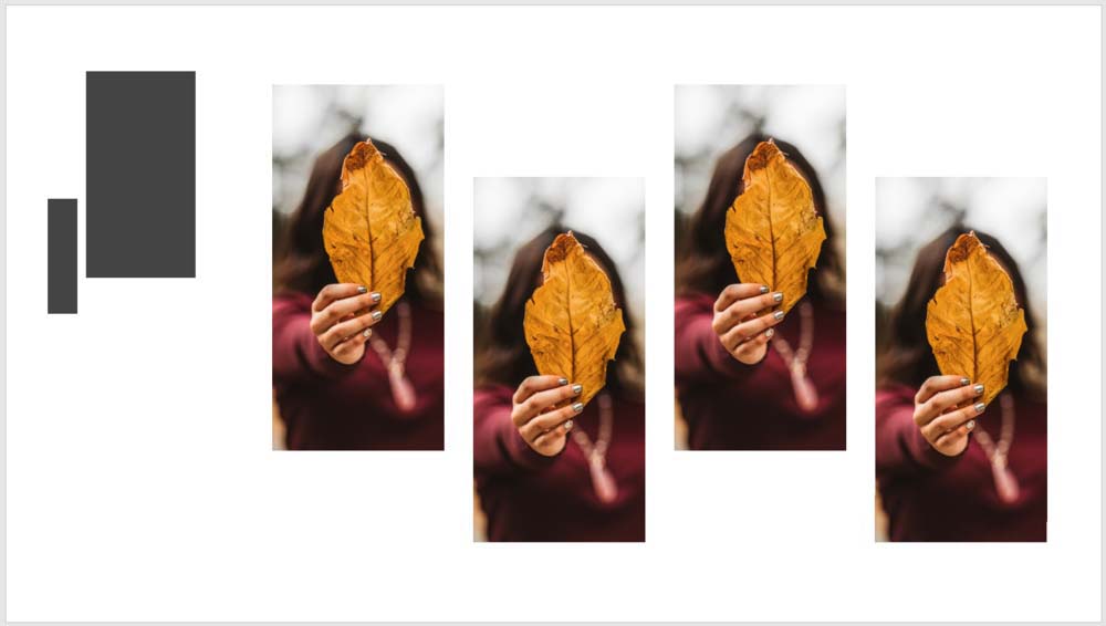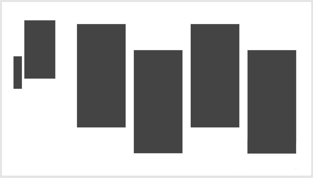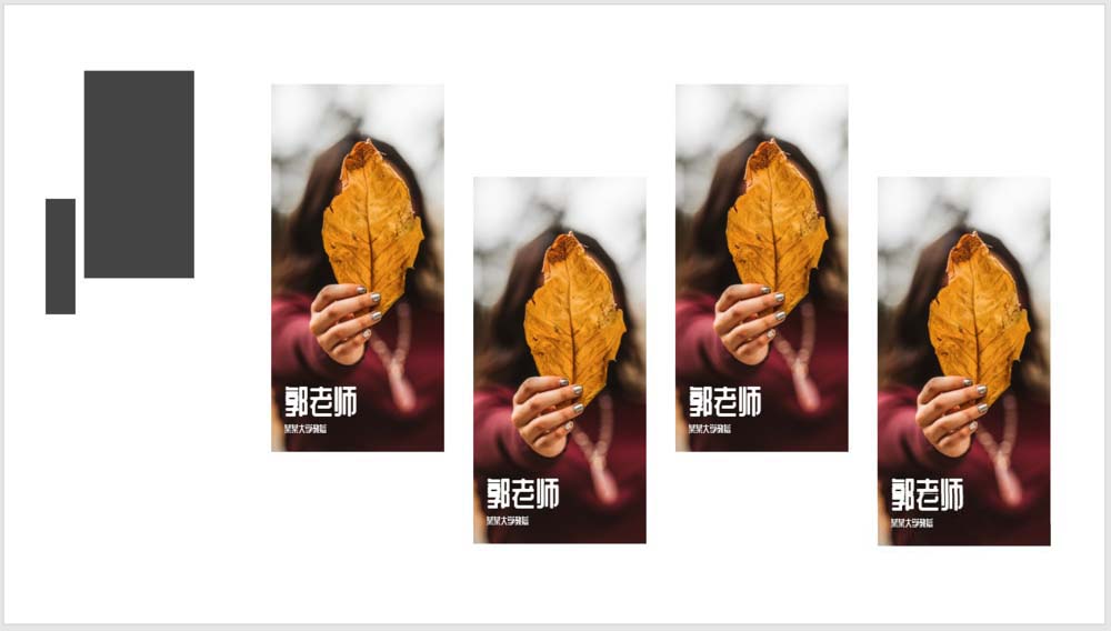 3、在右侧插入多个相同大小的矩形,错位放置,横向均匀分布,用于放置图片。