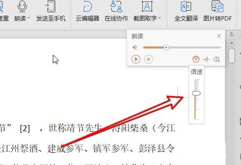 5、然后在弹出的语速调整下拉按钮中,我们可以通过拖动滑块来调整语速。