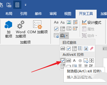 3、在开发工具中点击【复选框ActiveX控件】。