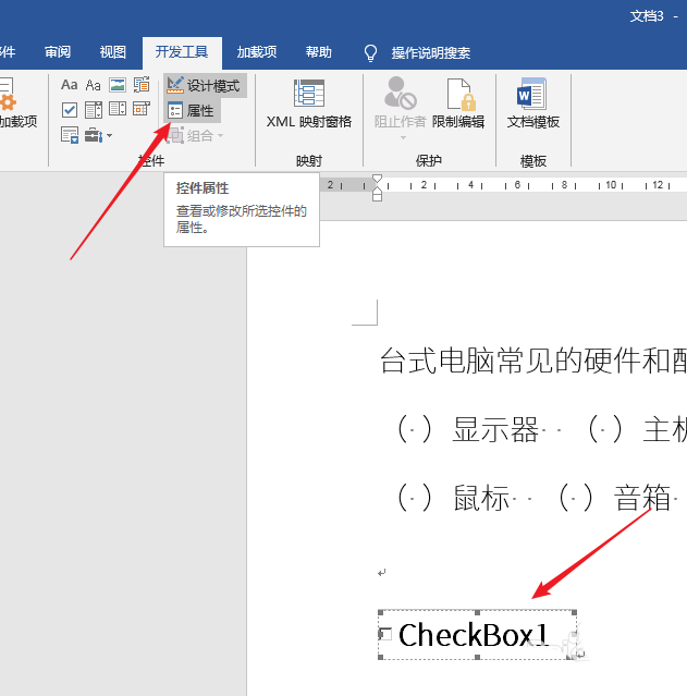4、则出现一个控件,点击控件【属性】。