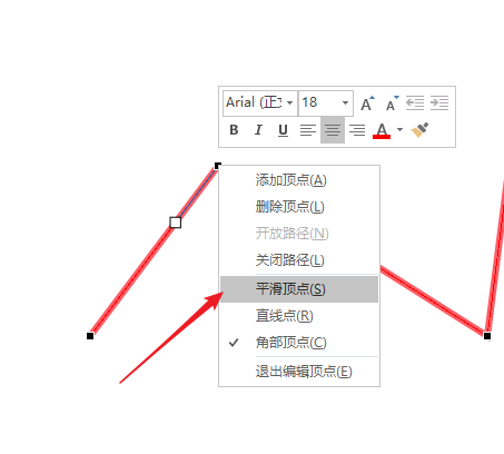 6、则这个顶点两边的线条就变成了曲线。