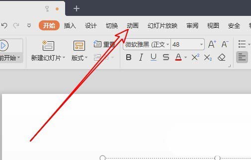 2、接着我们点击wps2019菜单栏上的“动画”菜单项。