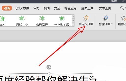 3、然后我们在打开的工具栏上点击“自定义动画”的图标。