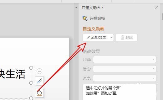 4、接着在打开的自定义动画 菜单中,我们点击“添加效果”下拉按钮。