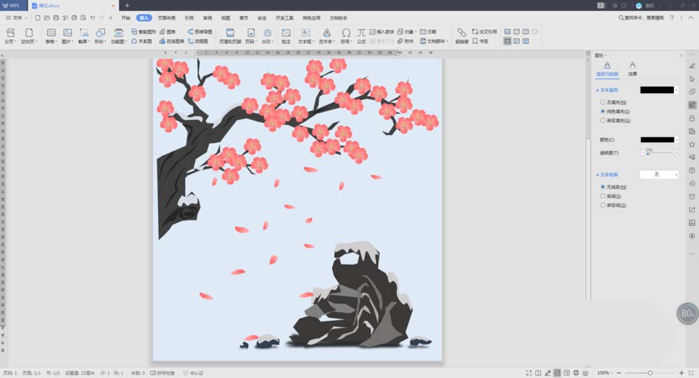 以上就是word绘制水墨画效果梅花图的教程,希望大家喜欢,本站采集来源:https://jingyan.baidu.com/article/7f41ecec7e8bf5593d095c95.html。