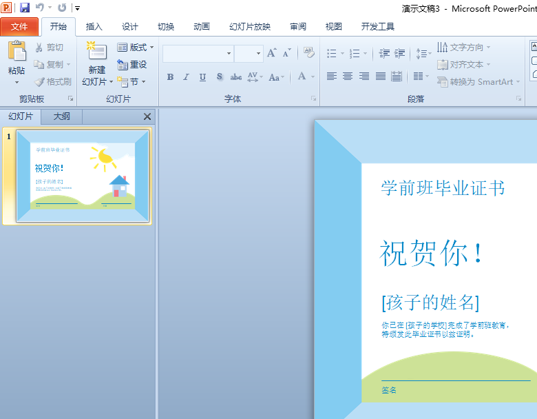 ppt2010中想要设计一款学前班毕业证书,我们可以直接使用模板来制作,下面我们就来看看详细的教程。