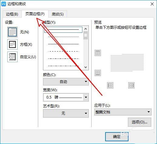 3、这时就会打开边框和底纹的窗口,在窗口中点击“页面边框”的选项卡。