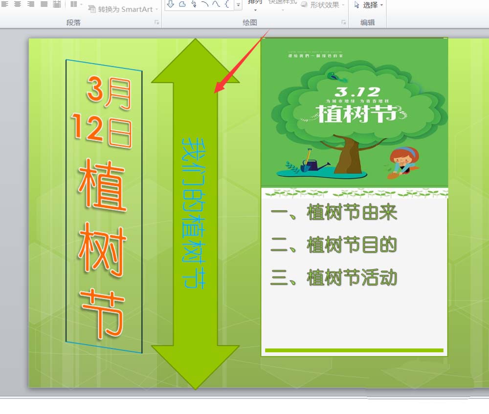 10、这样我们整个植树节的PPT就做好了,大家可以看一下。今天的如何制作植树节PPT教程,就为大家介绍到这里,希望对大家有所帮助。