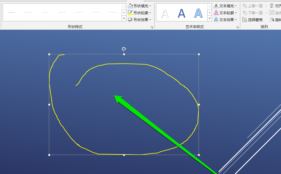 4、然后在PPT中,绘制一条自由的线条。