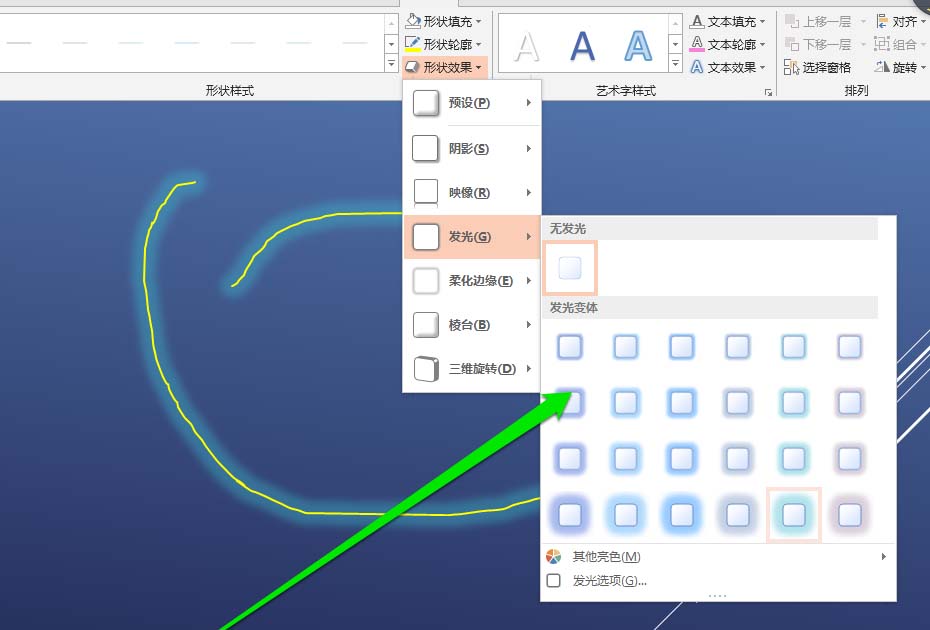ppt中想要画一条发光的线条,该怎么画呢?我们可以画一条线条,然后再使用线条的形状功能,选择发光的操作,使得线条进行发光,下面我们就来看看详细的教程。