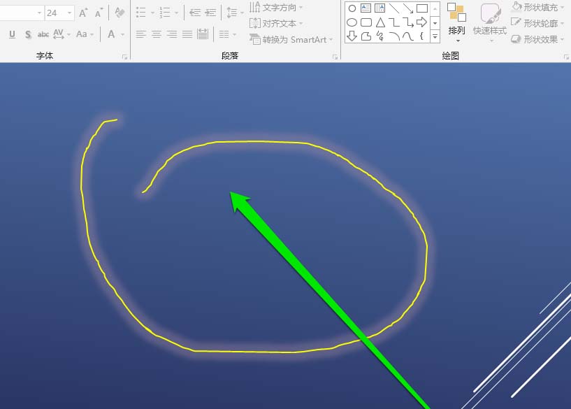 8、这时我们在PPT中,获得一条发光的线条。