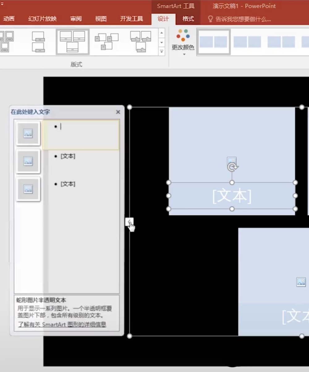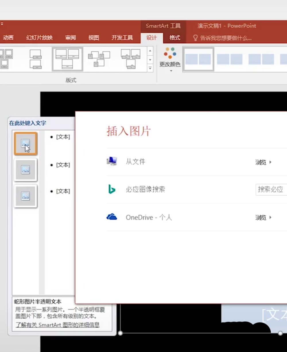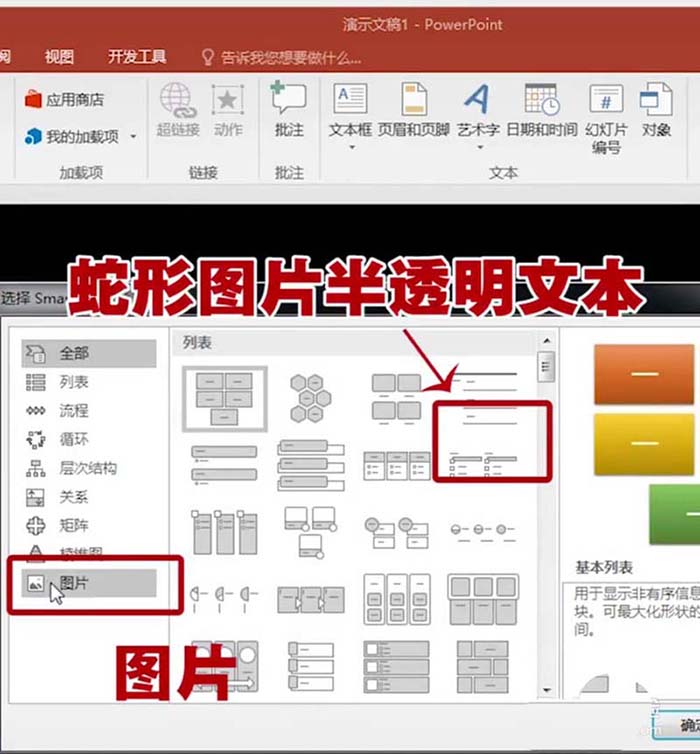 2、然后选择图片,再接着选择蛇形图片半透明文本。